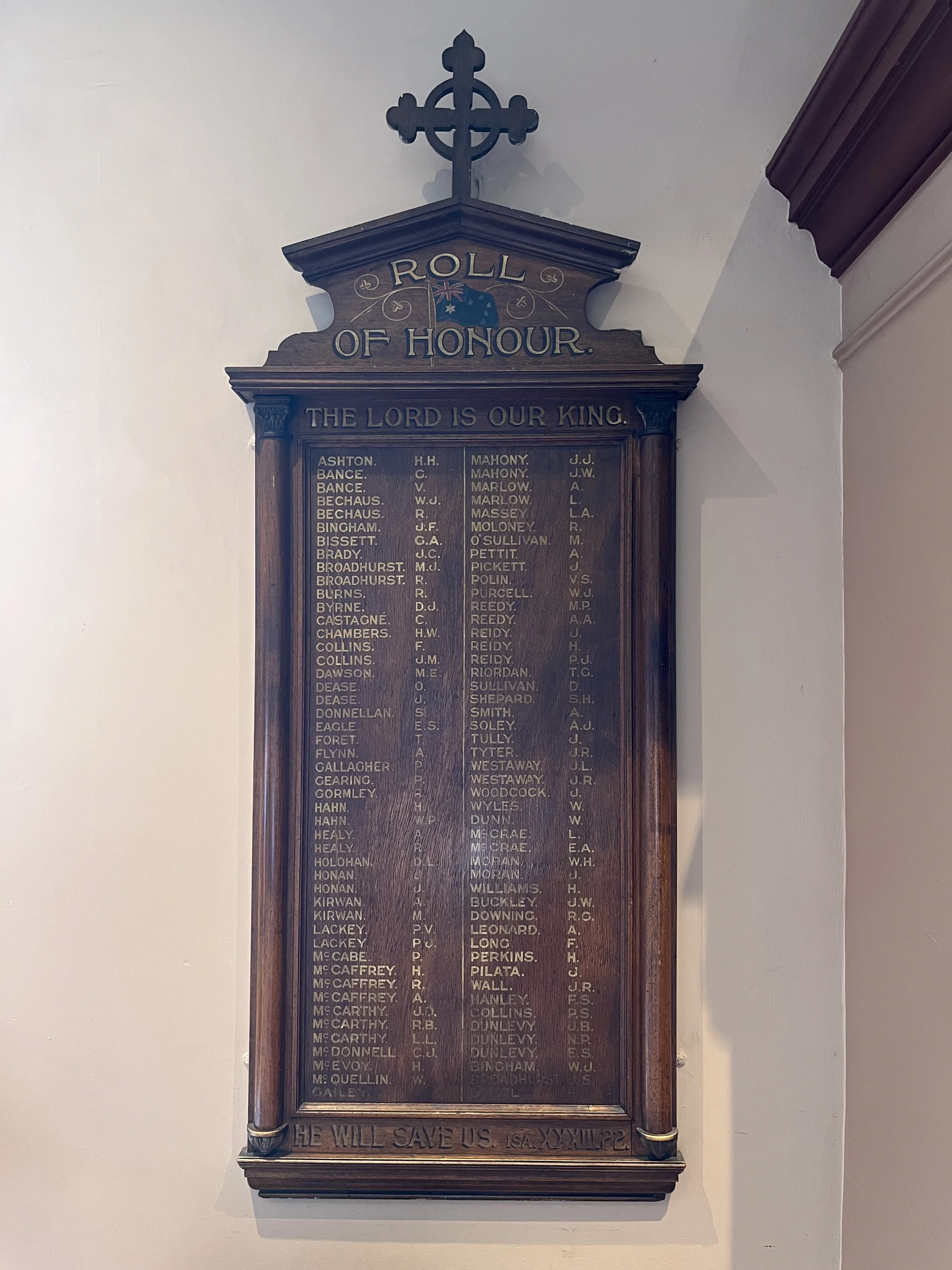 Many of our parishioners fought for Australia. While we do not glory in war, we do remember those who lost their lives and the faith they bore.